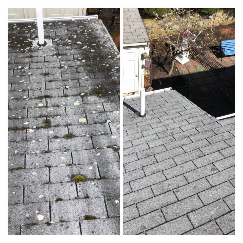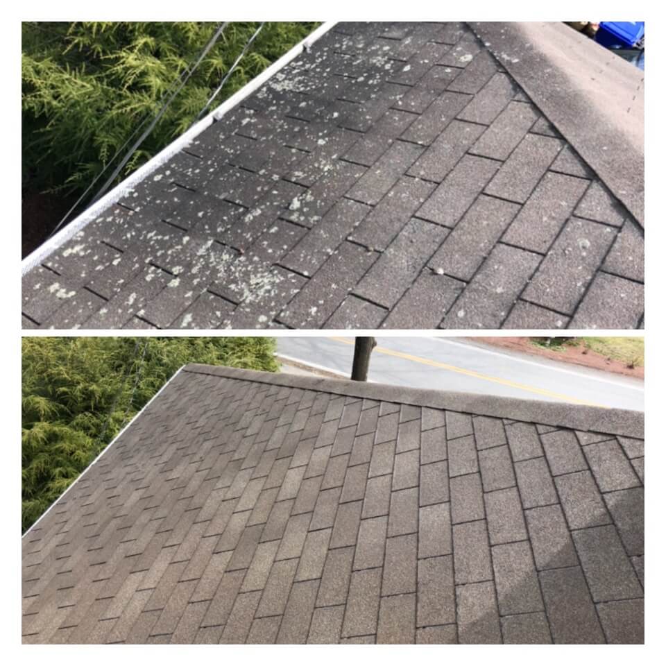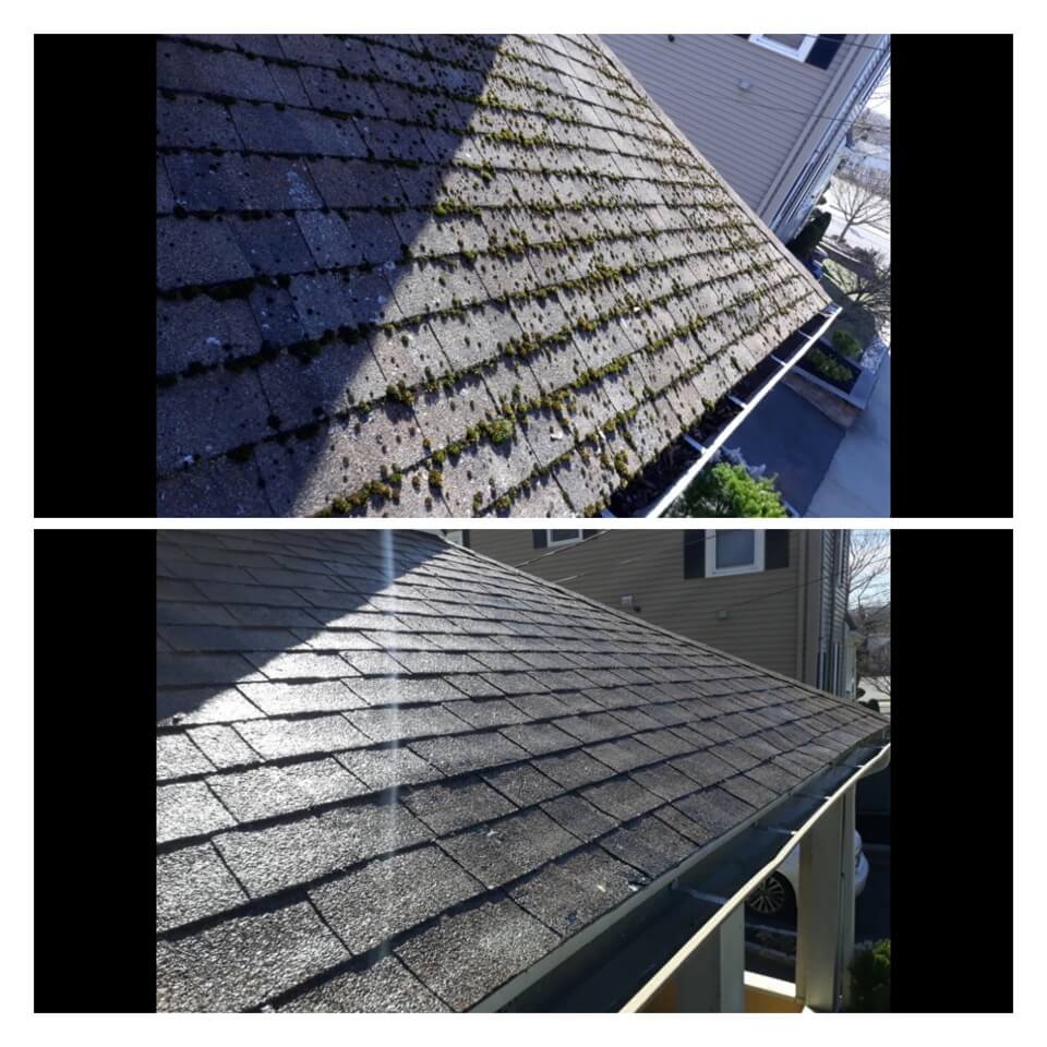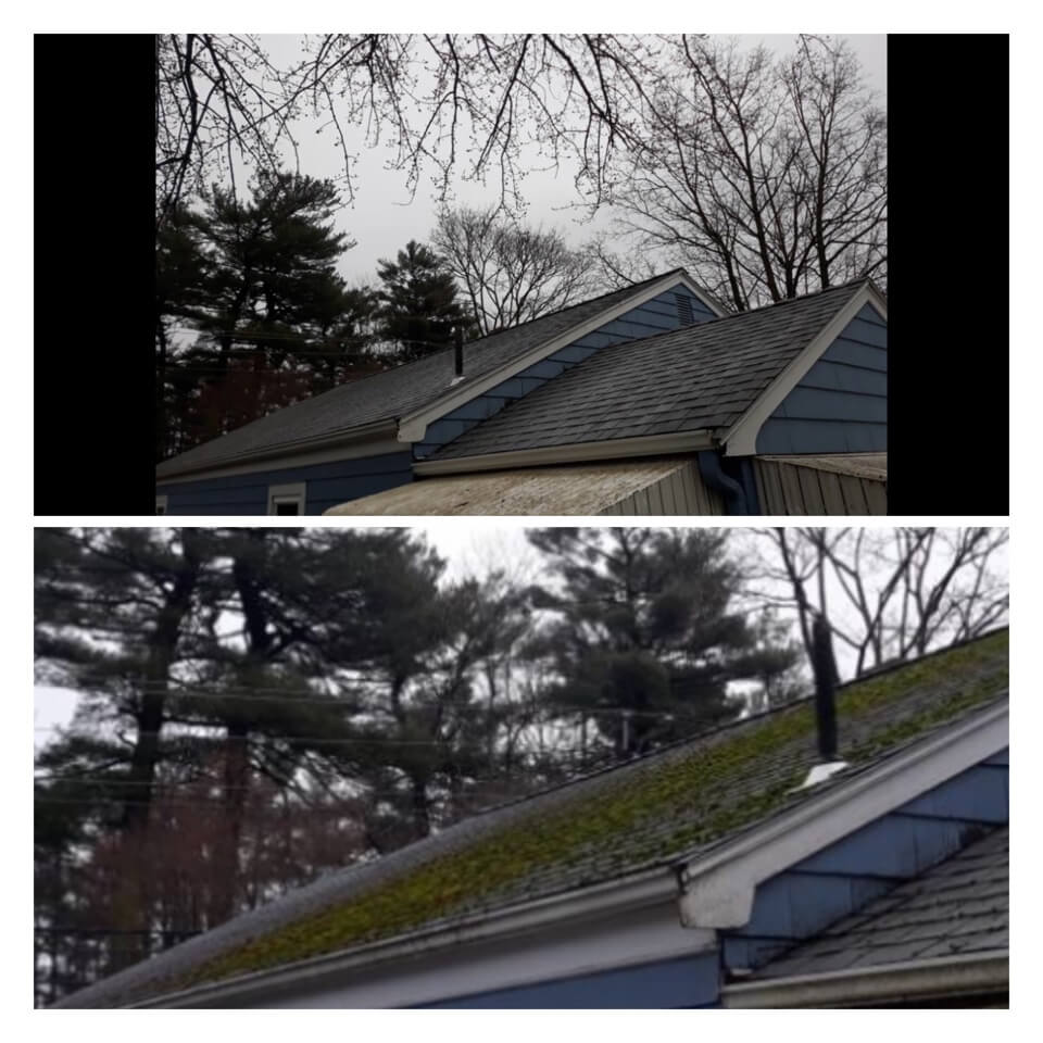 HiCleaners is the most experienced company in Pelham, NH that deals with roof washing and roof soft washing. All of our employees are trained to recognize precise solution mixing ratios to provide you with the safest and most effective soft washing service. Roofs are a commonly neglected part of a house due to the fact that most people don’t have ladders to access it, so it is very easy to just leave it alone and forget about problems that may start to arise. Just like many home owners, discoloration and small bits of moss on a roof can be overlooked because of the misconception that it is just aesthetic. However, it isn’t just aesthetic, the moss slowly lifts the granules off the shingles which in turn shorten the life of the shingle. The moss also spreads, just like any bacteria if it is left alone for too long, it can quickly become a problem that spirals out of control. Call HiCleaners for a free quote, we only use the most advanced eco-friendly solutions and equipment to make sure the job is done right, for the safety of the employees, your plants, grass, pets, and children.