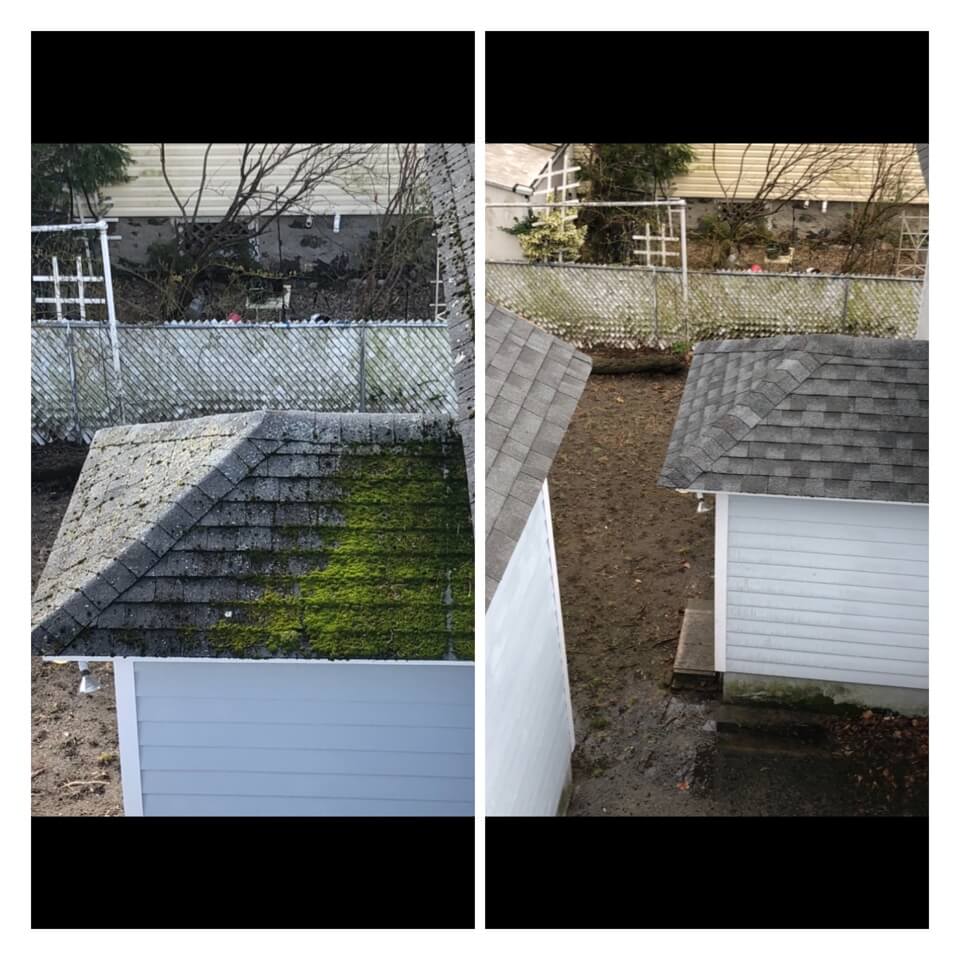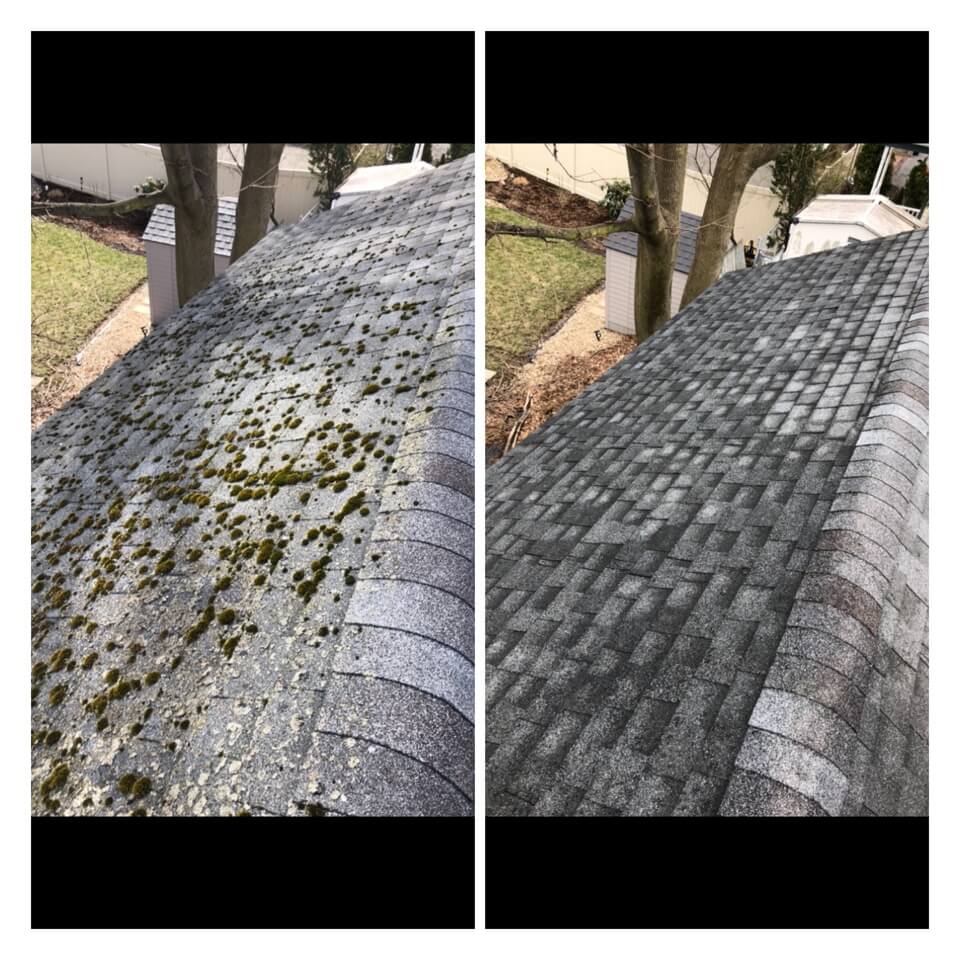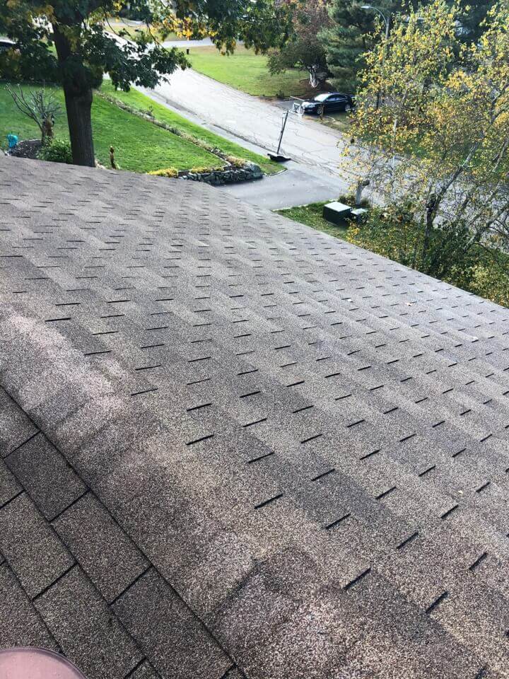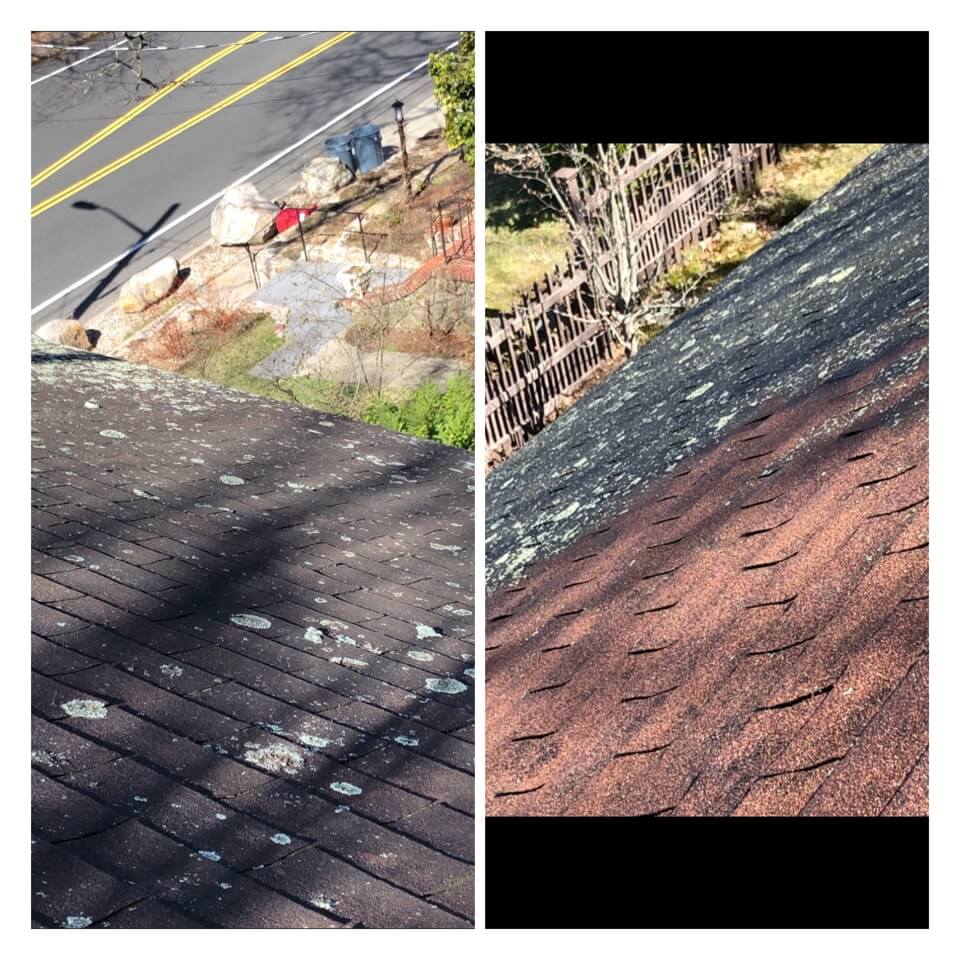 HiCleaners is the most experienced company in Pelham, NH that deals with roof washing and roof soft washing. All of our employees are trained to recognize precise solution mixing ratios to provide you with the safest and most effective soft washing service. Roofs are a commonly neglected part of a house due to the fact that most people don’t have ladders to access it, so it is very easy to just leave it alone and forget about problems that may start to arise. Just like many home owners, discoloration and small bits of moss on a roof can be overlooked because of the misconception that it is just aesthetic. However, it isn’t just aesthetic, the moss slowly lifts the granules off the shingles which in turn shorten the life of the shingle. The moss also spreads, just like any bacteria if it is left alone for too long, it can quickly become a problem that spirals out of control. Call HiCleaners for a free quote, we only use the most advanced eco-friendly solutions and equipment to make sure the job is done right, for the safety of the employees, your plants, grass, pets, and children.